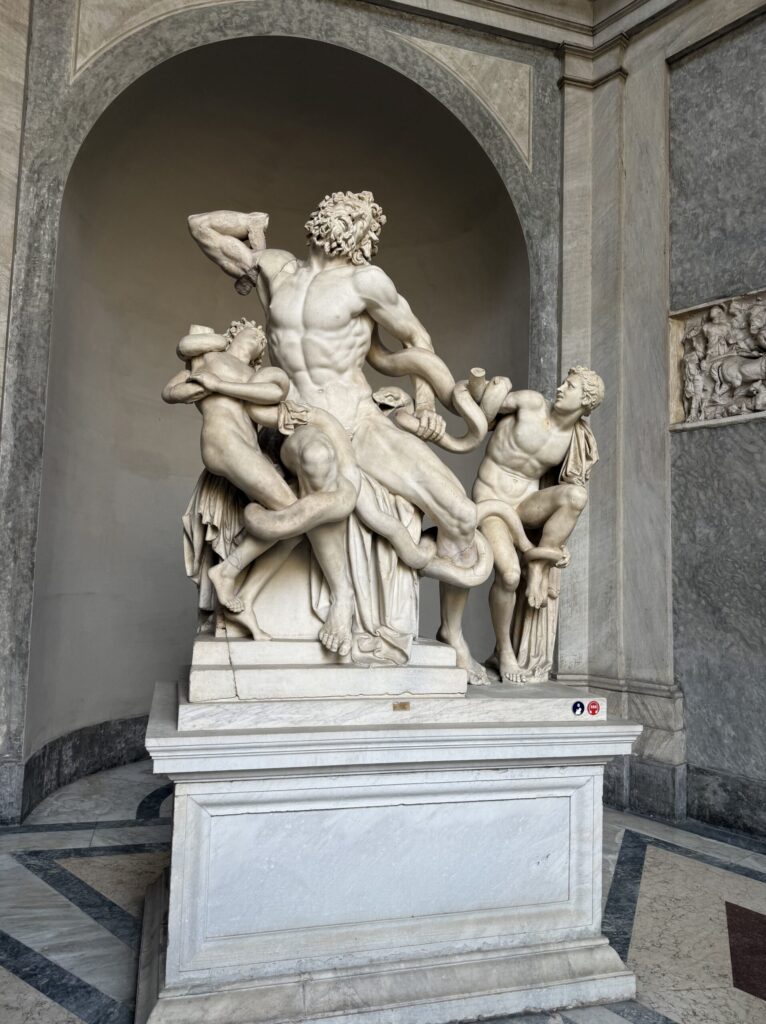 世界最大級の美術館で、古代ローマの彫刻やルネサンス絵画の宝庫。何十もの展示室があり、ラファエロの「アテネの学堂」など名画がずらり。